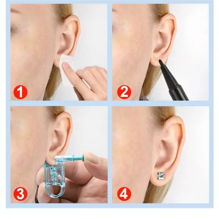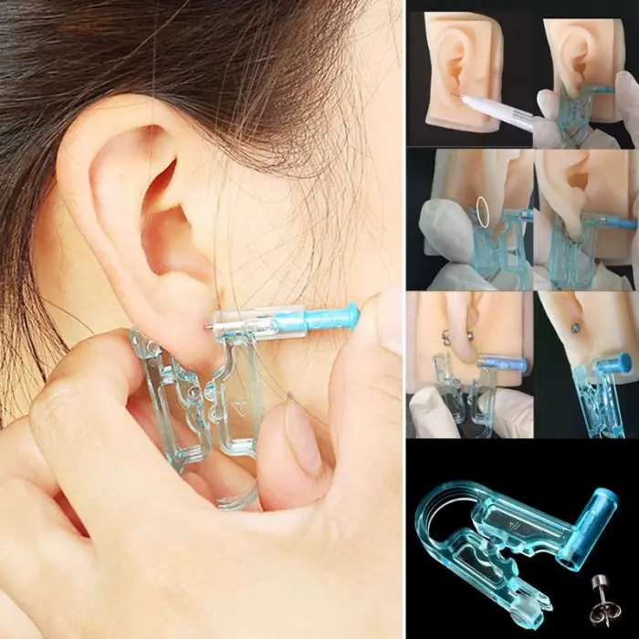 Incluye pistola perforadora con aro unisex hipoalergénico.