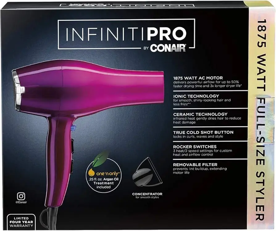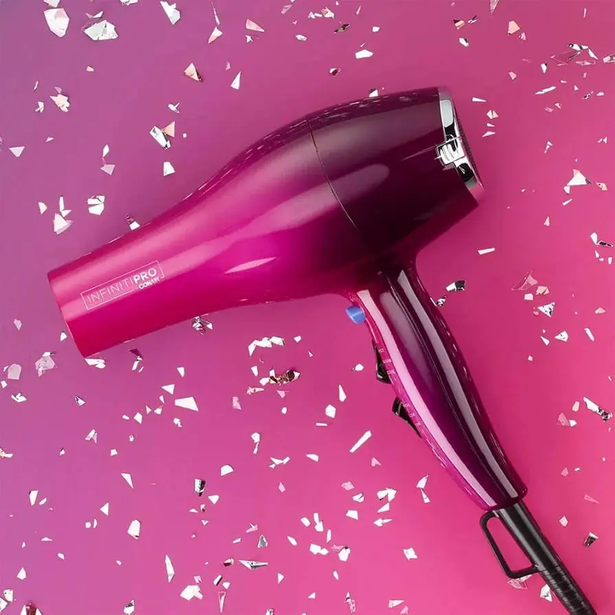 La secadora de cabello Infinitipro by Conair es un secador de alto rendimiento diseñado para uso profesional en salones de belleza o para el hogar. Se caracteriza por tener un potente motor de corriente alterna (AC) que, en algunos modelos, puede ofrecer hasta un 50% más de velocidad de secado en comparación con secadores con motores de corriente continua (DC).